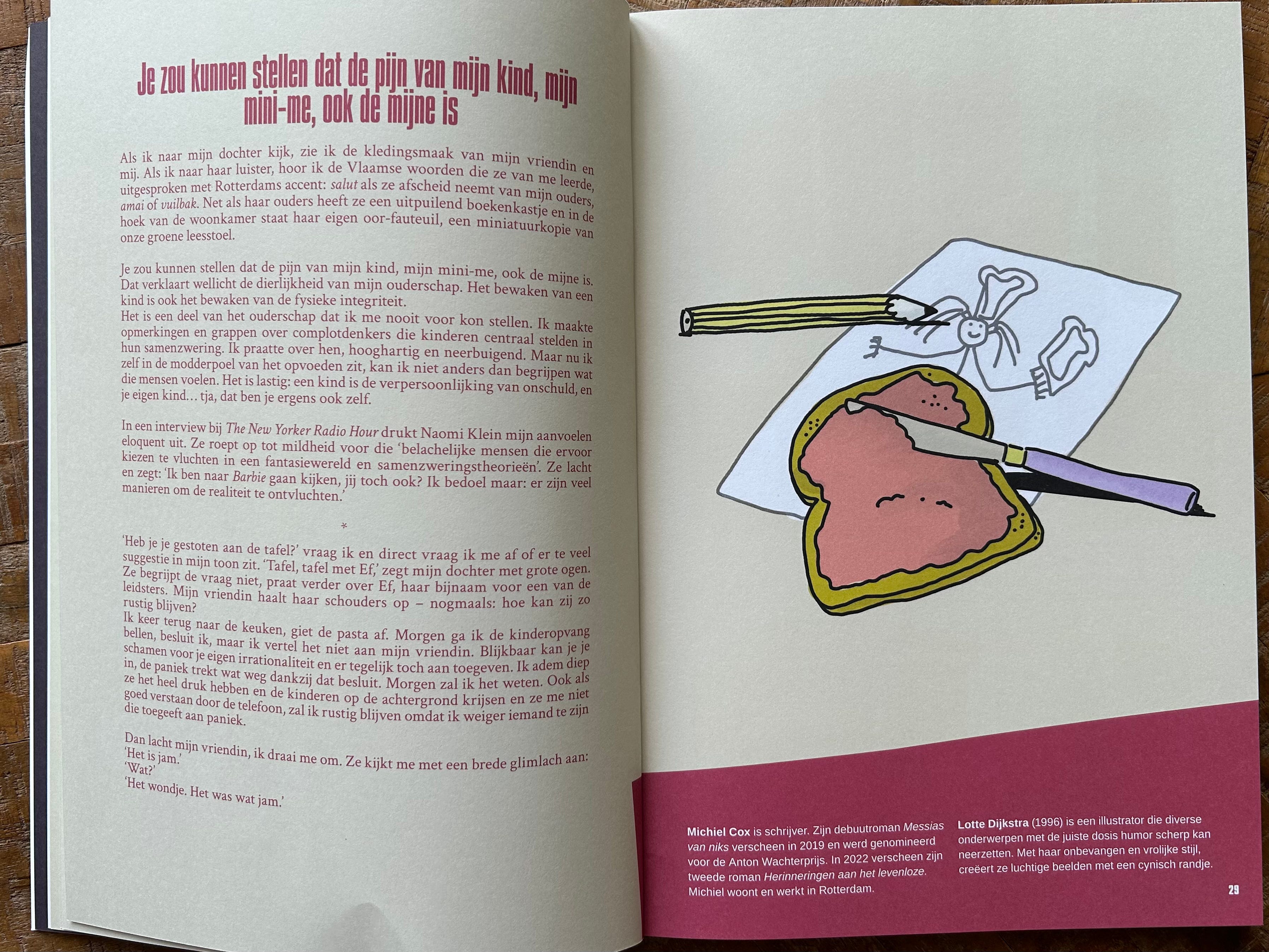 In 2022 kwamen er in België schokkende misstanden aan het licht in de kinderopvang: het begon met de dood van een kind door toedoen van een medewerker, daarna volgde een stortvloed van verhalen over mishandelingen door begeleiders. Toen ik erover hoorde, bezwoer ik de verhalen niet te lezen, maar het onderwerp was in het bijzijn van mijn Vlaamse familie en vrienden niet te vermijden. Ik verbeet mijn neiging om handen op mijn oren te leggen als de horror zonder verpinken, hoofdschuddend werd besproken. Ik kreeg alle details te horen.